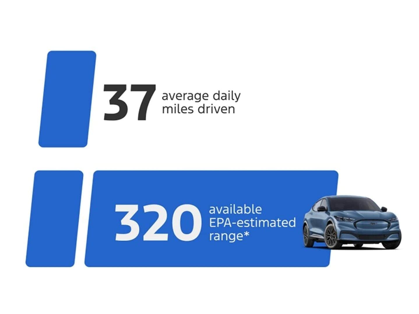 With the average American car owner driving about 37 miles a day, the EPA-estimated range 320 miles†will power through most commutes and beyond.