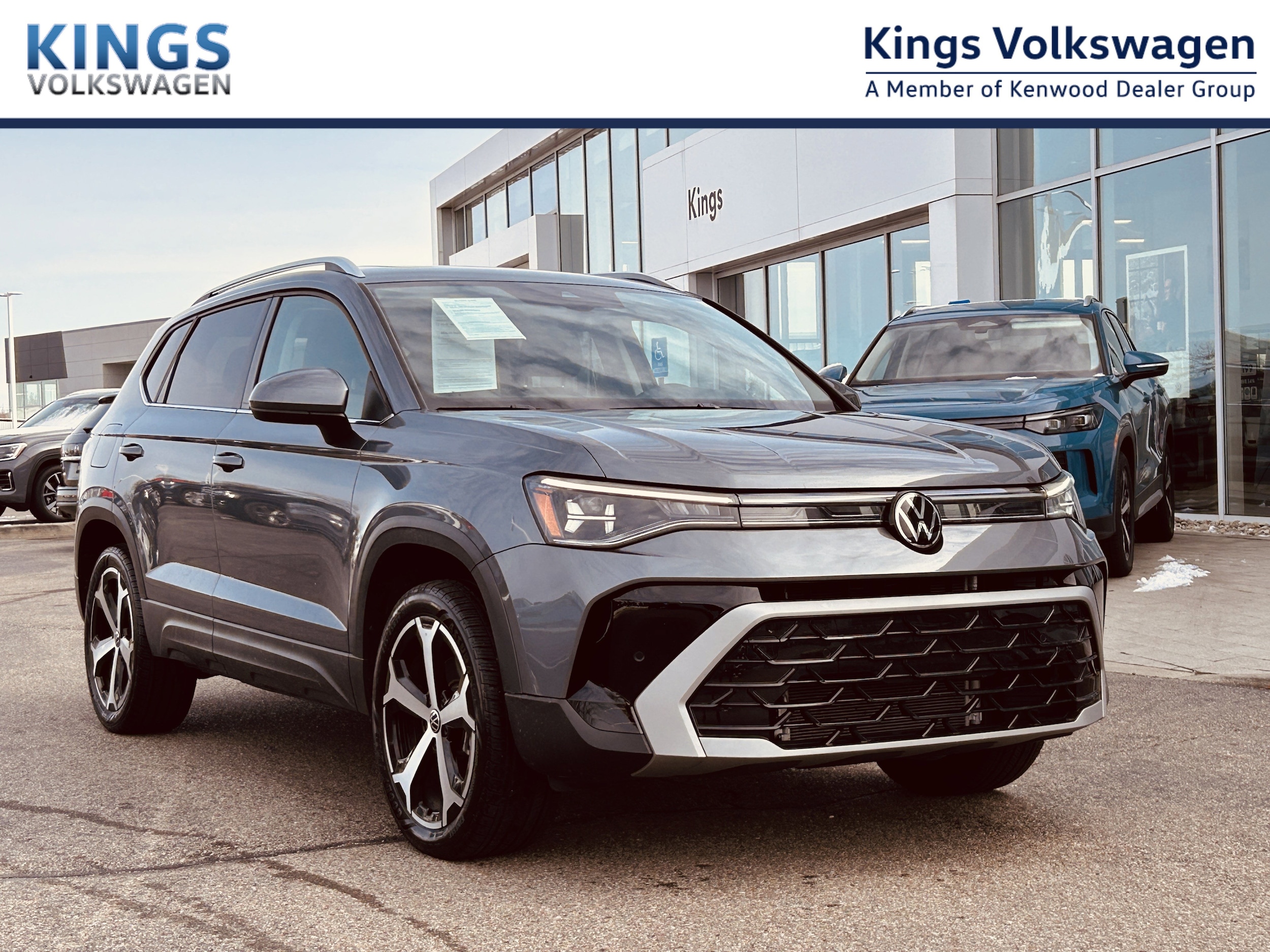 Certified. Platinum Gray Metallic 2025 Volkswagen Taos 1.5T SEL 1.5L I4 Turbocharged DOHC 16V LEV3-SULEV30 174hp AWD