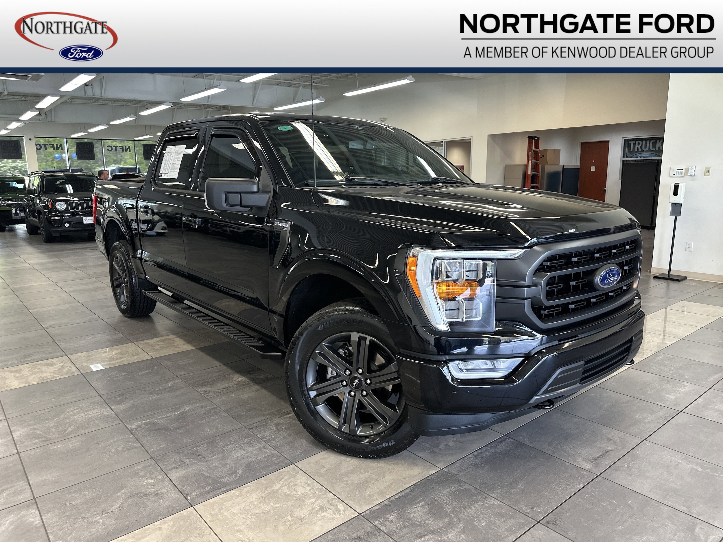 THIS VEHICLE ALSO HAS THE FOLLOWING OPTIONS AND FEATURES:Bed Utility Package (BoxLink, LED Box Lighting, Tailgate Step w/Tailgate Work Surface, and Zone Lighting), Equipment Group 302A High (10-Way Power Driver & Passenger Seats, 8" Productivity Screen in Instrument Cluster, Auto-Dimming Rear-View Mirror, Class IV Trailer Hitch Receiver, Dual Zone Electronic Automatic Temperature Control, Heated Front Seats, Intelligent Access w/Push Button Start, LED Reflector Headlamps, LED Sideview Mirror Spotlights, Onboard 400W Outlet, Power Glass Heated Sideview Mirrors, Radio: AM/FM SiriusXM w/360L, Rear Under-Seat Storage, Remote Start System w/Remote Tailgate Release, SecuriCode Drivers Side Keyless-Entry Keypad, SYNC 4 w/Enhanced Voice Recognition, and Wrapped Steering Wheel), Trailer Tow Package (Integrated Trailer Brake Controller and Pro Trailer Backup Assist & Pro Trailer Hitch Assist), XLT Sport Appearance Package (Accent-Color Step Bars, Black 2-Bar Style Grille w/Black Surround/Accents, Body-Color Door & Tailgate Handles, Body-Color Front & Rear Bumpers, Box Side Decals, and Unique Sport Cloth 40/Console/40 Front-Seats), F-150 XLT, 4D SuperCrew, 5.0L V8, 4WD, Black w/Unique Sport Cloth 40/Console/40 Power Front Seat, Auto High-beam Headlights, Electronic Locking w/3.31 Axle Ratio, Electronic Stability Control, Exterior Parking Camera Rear, Power-Sliding Rear Window, Remote Start System, Wheels: 20" 6-Spoke Dark Alloy Painted Aluminum, 4-Wheel Disc Brakes, 6 Speakers, ABS brakes, Air Conditioning, Alloy wheels, AM/FM radio, Brake assist, Compass, Delay-off headlights, Driver door bi