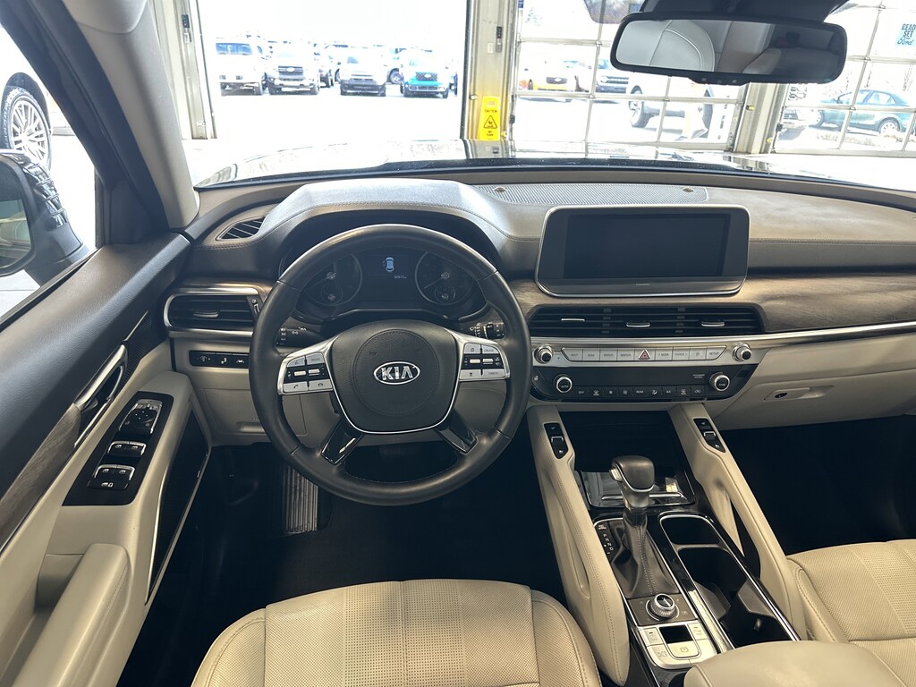 THIS VEHICLE ALSO HAS THE FOLLOWING OPTIONS AND FEATURES:EX Premium Package (20" Alloy Wheels, Anodized Roof Rails, and Captain's Chairs), Towing Package (Self-Leveling Rear Suspension and Tow Hitch w/Harness), Telluride EX, 4D Sport Utility, AWD, Gray w/SOFINO Artificial Leather Upholstery, AM/FM radio: SiriusXM, Apple CarPlay & Android Auto, Automatic temperature control, Electronic Stability Control, Navigation System, Power Liftgate, Power moonroof, Radio data system, Radio: AM/FM/MP3/SiriusXM Audio System, Rear audio controls, Reclining 3rd row seat, Wheels: 7.5" x 18" Machined Finish Alloy, 3.648 Axle Ratio, 3rd row seats: split-bench, 4-Wheel Disc Brakes, 6 Speakers, ABS brakes, Air Conditioning, Alloy wheels, Auto-dimming Rear-View mirror, Brake assist, Bumpers: body-color, Carpeted Floor Mats, Compass, Delay-off headlights, Driver door bin, Driver vanity mirror, Dual front impact airbags, Dual front side impact airbags, Emergency communication system: 911 Connect, Four wheel independent suspension, Front anti-roll bar, Front Bucket Seats, Front Center Armrest, Front dual zone A/C, Front reading lights, Fully automatic headlights, Heated & Ventilated Front Bucket Seats, Heated door mirrors, Heated front seats, Hybrid Cargo Net, Illuminated entry, Illuminated Scuff Plates, Knee airbag, Leather Shift Knob, Leather steering wheel, Low tire pressure warning, Multi Colored Interior Light Kit, Occupant sensing airbag, Outside temperature display, Overhead airbag, Overhead console, Panic alarm, Passenger door bin, Passenger vanity mirror, Power door mirrors, Power driver seat, Power passenger seat, Power steering, Power windows, Rear air conditioning, Rear anti-roll bar, Rear Bumper Protector, Rear reading lights, Rear seat center armrest, Rear window defroster, Rear window wiper, Remote keyless entry, Roof rack: rails only, Security system, Speed control, Speed-sensing steering, Split folding rear seat, Spoiler, Steering wheel mounted audio controls, Tachometer, Telescoping steering wheel, Tilt steering wheel, Traction control, Trip computer, Turn signal indicator mirrors, Variably intermittent wipers, and Ventilated front seats.