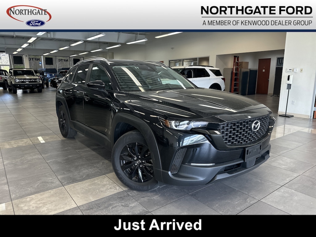 THIS VEHICLE ALSO HAS THE FOLLOWING OPTIONS AND FEATURES:CX-50 2.5 S Preferred Package, 4D Sport Utility, SKYACTIV® 2.5L 4-Cylinder DOHC 16V, AWD, Black w/Gray w/Half Leatherette Seat Trim, AM/FM radio, Auto High-beam Headlights, Automatic temperature control, Electronic Stability Control, Exterior Parking Camera Rear, Power Liftgate, Radio data system, Radio: AM/FM/HD Audio System, Wheels: 17" x 7J Aluminum Alloy, 4-Wheel Disc Brakes, 4.367 Axle Ratio, 8 Speakers, ABS brakes, Air Conditioning, Alloy wheels, AppLink/Apple CarPlay and Android Auto, Brake assist, Bumpers: body-color, Delay-off headlights, Driver door bin, Driver vanity mirror, Dual front impact airbags, Dual front side impact airbags, Emergency communication system: MAZDA CONNECT, Front anti-roll bar, Front Bucket Seats, Front Center Armrest, Front dual zone A/C, Front reading lights, Front wheel independent suspension, Fully automatic headlights, Half Leatherette Seat Trim, Heated door mirrors, Heated Front Bucket Seats, Heated front seats, Illuminated entry, Knee airbag, Leather Shift Knob, Leather steering wheel, Low tire pressure warning, Occupant sensing airbag, Outside temperature display, Overhead airbag, Overhead console, Panic alarm, Passenger door bin, Passenger vanity mirror, Power door mirrors, Power driver seat, Power steering, Power windows, Rain sensing wipers, Rear seat center armrest, Rear window defroster, Rear window wiper, Remote keyless entry, Speed control, Speed-sensing steering, Split folding rear seat, Spoiler, Steering wheel mounted audio controls, Tachometer, Telescoping steering wheel, Tilt steering wheel, Traction control, Trip computer, Turn signal indicator mirrors, and Variably intermittent wipers.